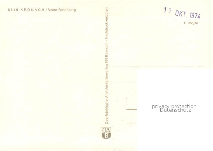 73647727 Kronach Oberfranken Veste Rosenberg Fliegeraufnahme postalisch nicht gelaufen Erhaltung siehe scans [WerneD78] KatCode: 11110009476145