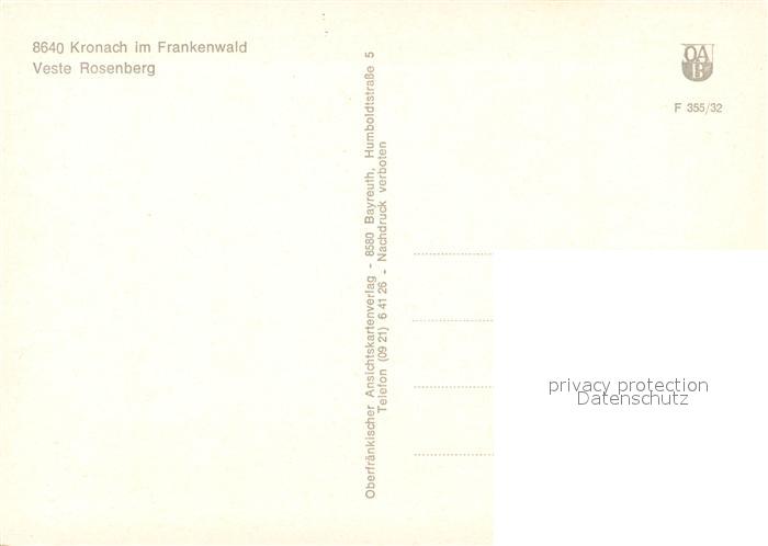 73643258 Kronach Oberfranken Veste Rosenberg Fliegeraufnahme postalisch nicht gelaufen Erhaltung siehe scans [WerneD78] KatCode: 11110009476145