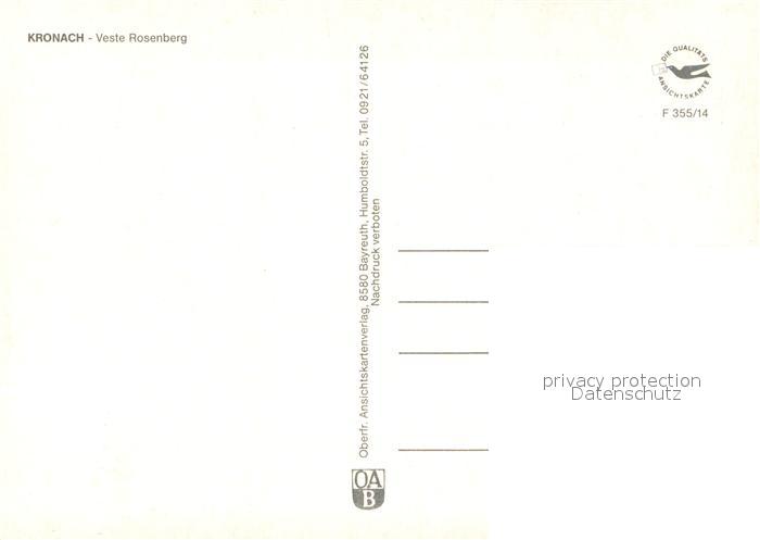 73614735 Kronach Oberfranken Veste Rosenberg Fliegeraufnahme postalisch nicht gelaufen Erhaltung siehe scans [PaolaD17] KatCode: 11110009476145