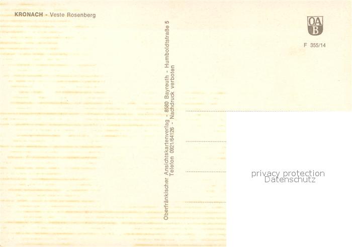 73211037 Kronach Oberfranken Veste Rosenberg Fliegeraufnahme postalisch nicht gelaufen Erhaltung siehe scans [WerneD78] KatCode: 11110009476145