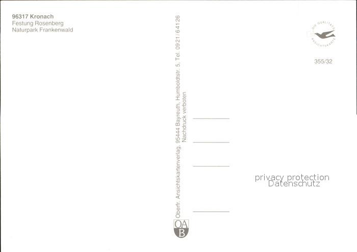 72261974 Kronach Oberfranken Veste Rosenberg Naturpark Frankenwald Fliegeraufnahme postalisch nicht gelaufen Erhaltung siehe scans KatCode: 11110009476145