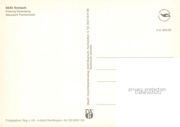 73657193 Kronach Oberfranken Veste Rosenberg Naturpark Frankenwald Fliegeraufnahme postalisch nicht gelaufen Erhaltung siehe scans [FriedD77] KatCode: 11110009476145
