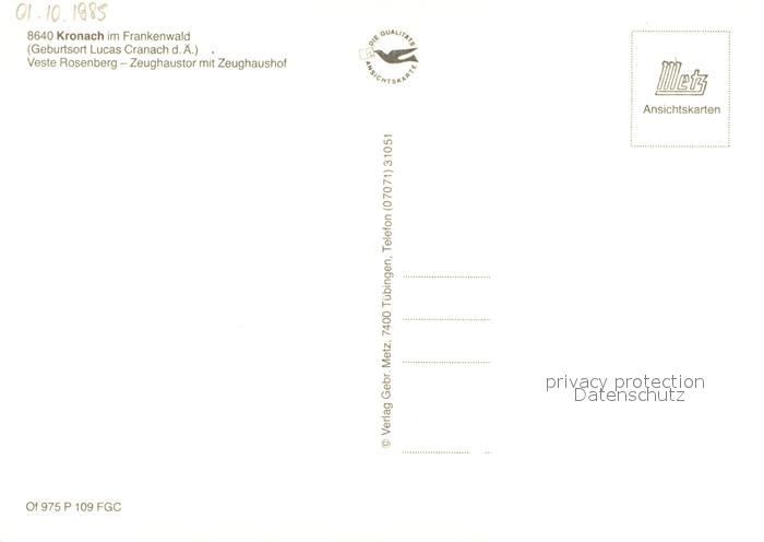 73265927 Kronach Oberfranken Veste Rosenberg Zeughaustor Zeughaushof postalisch nicht gelaufen Erhaltung siehe scans [FriedD77] KatCode: 11110009476145