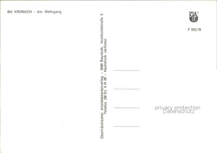 72447425 Kronach Oberfranken Wehrgang postalisch nicht gelaufen Erhaltung siehe scans KatCode: 11110009476145