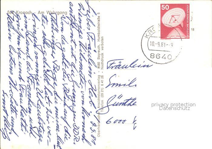 alte Postkarte Kronach Oberfranken Wehrgang postalisch gelaufen Erhaltung siehe scans