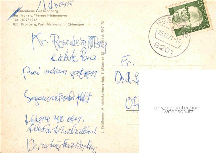 72850862 alte Postkarte Kronberg Hoeslwang Fremdenheim Gut Kronberg Pferdeschlitten Inri postalisch gelaufen Erhaltung siehe scans [FriedD77] KatCode: 11110009187145