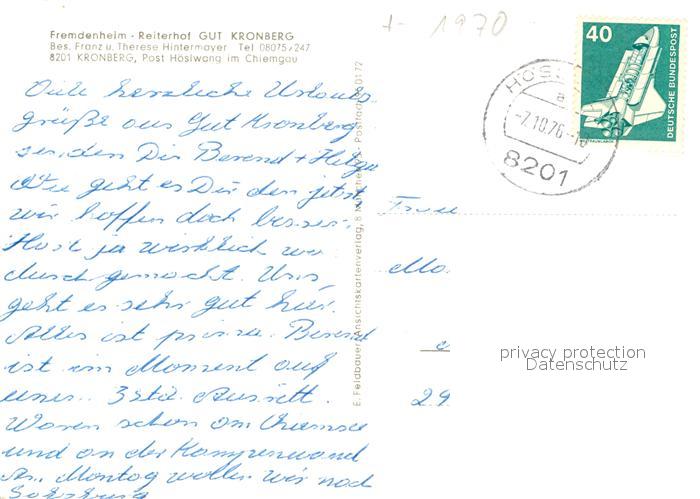 72941139 alte Postkarte Kronberg Hoeslwang Fremdenheim Reiterhof Gut Kronberg postalisch gelaufen Erhaltung siehe scans [NatalD47] KatCode: 11110009187145