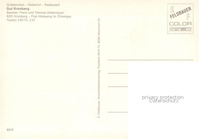 73685092 Kronberg Hoeslwang Gutspension Reiterhof Restaurant Gut Kronberg postalisch nicht gelaufen Erhaltung siehe scans [FriedD77] KatCode: 11110009187145