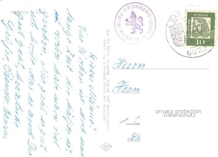 73752460 alte Postkarte Kronberg Taunus Fliegeraufnahme postalisch gelaufen Erhaltung siehe scans [WerneD78] KatCode: 11110006434006