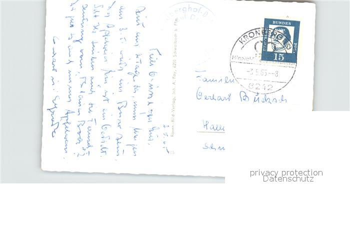 72510698 alte Postkarte Kronberg Taunus Grosser Feldberg Burgruine Reifenberg Burgruine Eppstein Bad Soden Badehaus Fuchstanz Burgruine Koenigstein postalisch gelaufen Erhaltung siehe scans KatCode: 11110006434006