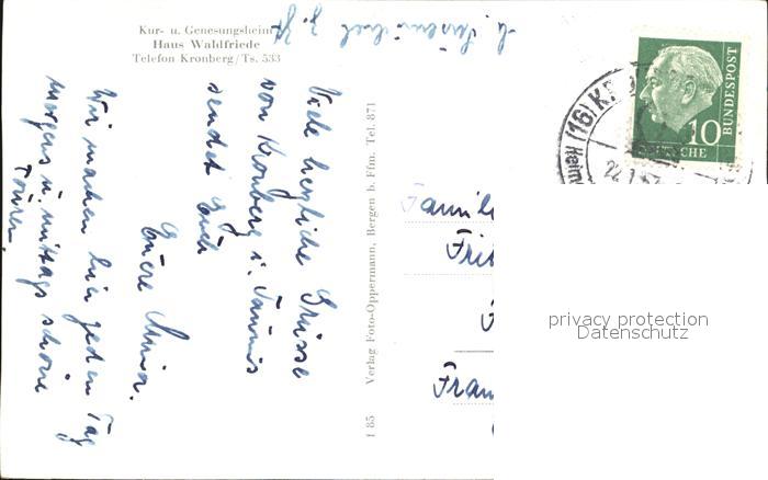 72506576 alte Postkarte Kronberg Taunus Haus Waldfriede postalisch gelaufen Erhaltung siehe scans KatCode: 11110006434006