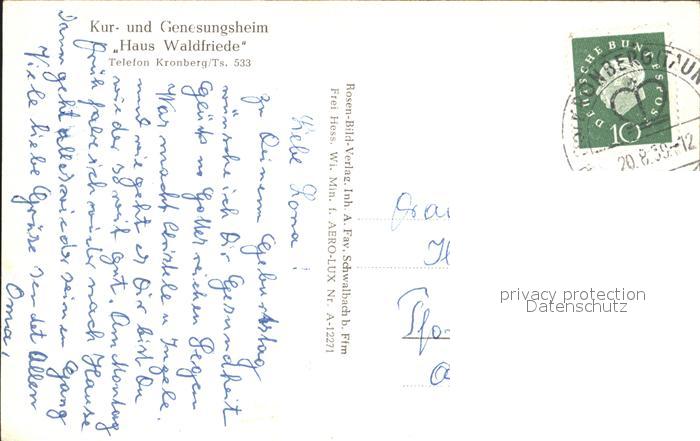 72117990 alte Postkarte Kronberg Taunus Kurheim Genesungsheim Haus Waldfriede postalisch gelaufen Erhaltung siehe scans KatCode: 11110006434006