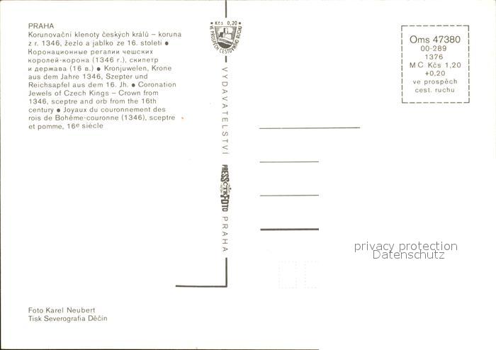 Krone Koenigshaeuser Praha Kronjuwelen Szepter Reichsapfel postalisch nicht gelaufen Erhaltung siehe scans