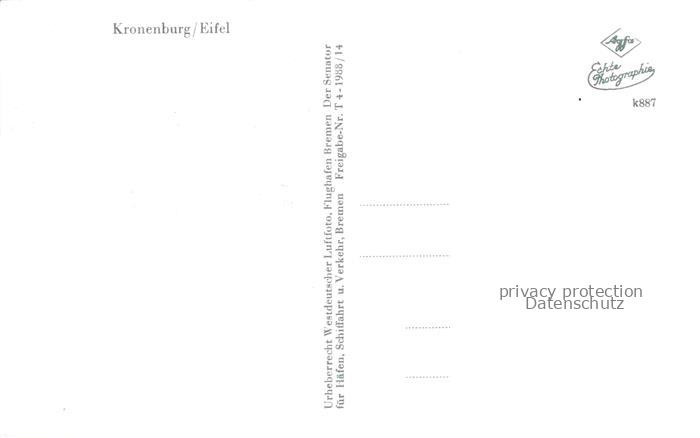 34145237 Kronenburg Eifel Dahlem Euskirchen NRW Fliegeraufnahme postalisch nicht gelaufen Erhaltung siehe scans [FriedD77] KatCode: 11110005366012
