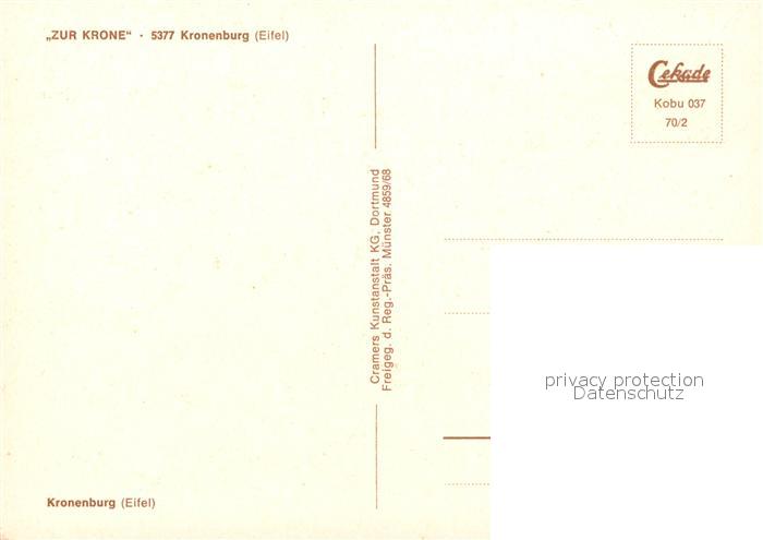 73175625 Kronenburg Eifel Fliegeraufnahme Zur Krone postalisch nicht gelaufen Erhaltung siehe scans [LiesaD40] KatCode: 11110005366012