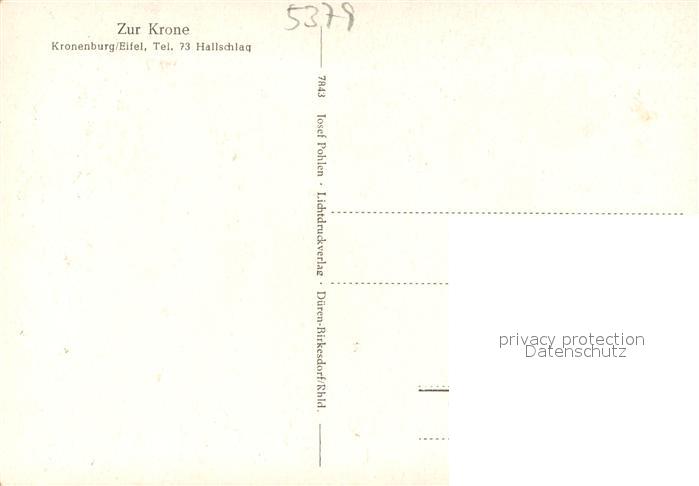 73706706 Kronenburg Eifel Gasthaus Zur Krone postalisch nicht gelaufen Erhaltung siehe scans [WerneD78] KatCode: 11110005366012