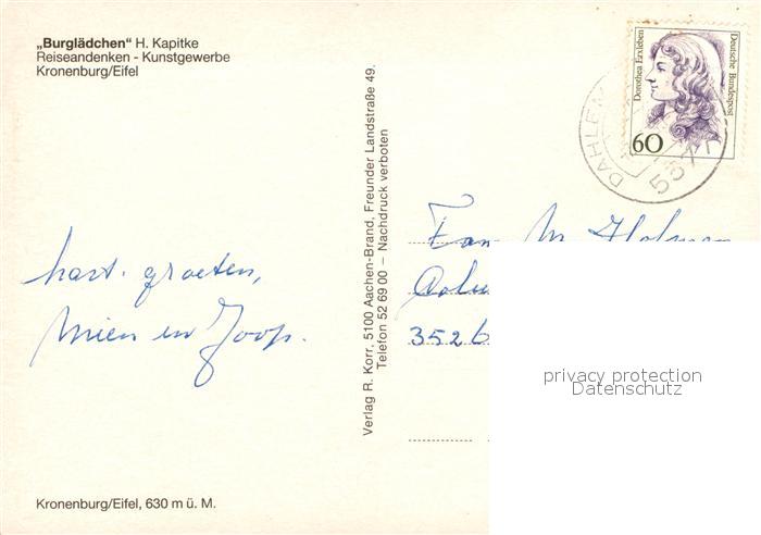 73306172 alte Postkarte Kronenburg Eifel Panorama Kirche postalisch gelaufen Erhaltung siehe scans [WerneD78] KatCode: 11110005366012