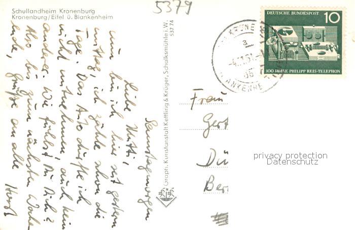 73706610 alte Postkarte Kronenburg Eifel Schullandheim Kronenburg postalisch gelaufen Erhaltung siehe scans [WerneD78] KatCode: 11110005366012
