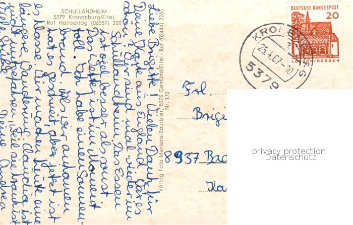 73800726 alte Postkarte Kronenburg Eifel Schullandheim postalisch gelaufen Erhaltung siehe scans [WerneD78] KatCode: 11110005366012