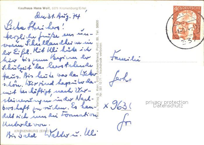 alte Postkarte Kronenburg Eifel Teilansicht postalisch gelaufen Erhaltung siehe scans