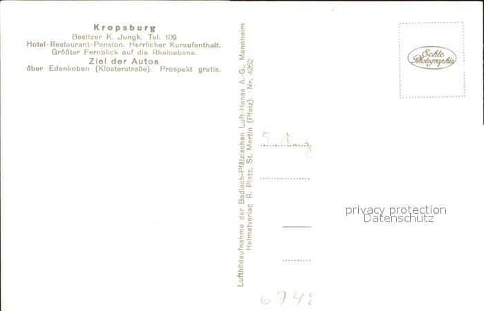 31729632 Kropsburg Fliegeraufnahme St. Martin Rheinplatz postalisch nicht gelaufen Erhaltung siehe scans KatCode: 11110007316000