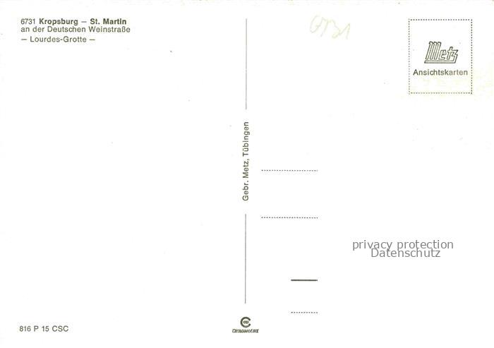 74047378 Kropsburg Lourdes-Grotte postalisch nicht gelaufen Erhaltung siehe scans [FriedD77] KatCode: 11110007316000