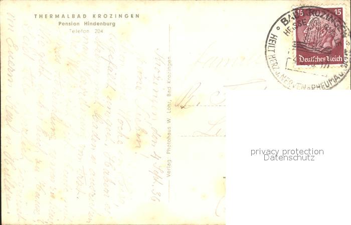41995703 Krozingen Bad Pension Hndenburg postalisch nicht gelaufen Erhaltung siehe scans KatCode: 11110008315006
