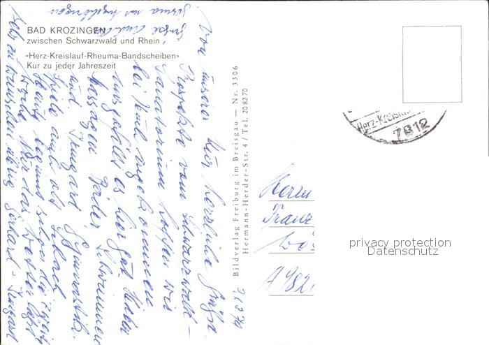 72370539 alte Postkarte Krozingen Bad Schwarzwald Herz Kreislauf Kurort postalisch gelaufen Erhaltung siehe scans KatCode: 11110008315006