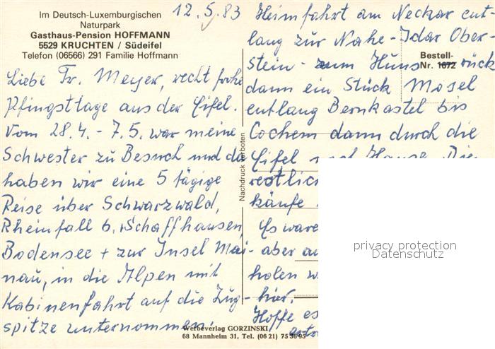 73672712 alte Postkarte Kruchten Panorama Gasthaus Pension Hoffmann postalisch gelaufen Erhaltung siehe scans [WerneD78] KatCode: 11110007232069