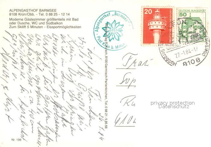 73615802 alte Postkarte Kruen Alpengasthof Barmsee postalisch gelaufen Erhaltung siehe scans [WerneD78] KatCode: 11110009180122