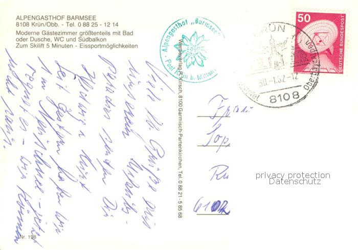 73615778 alte Postkarte Kruen Alpengasthof Barmsee postalisch gelaufen Erhaltung siehe scans [WerneD78] KatCode: 11110009180122
