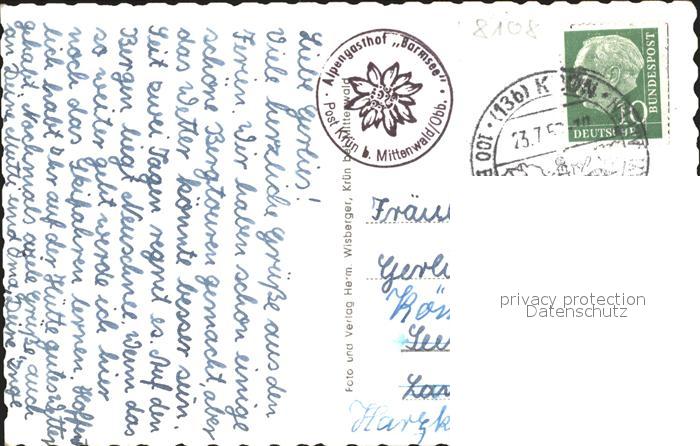 71913033 alte Postkarte Kruen Alpengasthof Barmsee Krottenkopf Grubsee Barmsee postalisch gelaufen Erhaltung siehe scans KatCode: 11110009180122