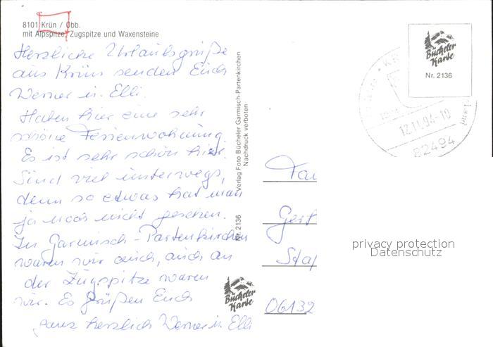 alte Postkarte Kruen Alpspitze Zugspitze Waxensteine postalisch gelaufen Erhaltung siehe scans