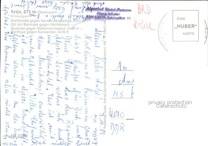 alte Postkarte Kruen Dorfstrasse Karwendelgebirge Barmsee postalisch gelaufen Erhaltung siehe scans