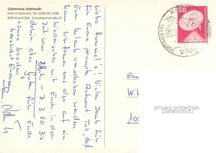 73714140 alte Postkarte Kruen Gaestehaus Edelweiss postalisch gelaufen Erhaltung siehe scans [WerneD78] KatCode: 11110009180122