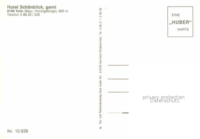 72751199 Kruen Hotel Schoenblick Huber Karte Nr 10.939 postalisch nicht gelaufen Erhaltung siehe scans [FriedD77] KatCode: 11110009180122