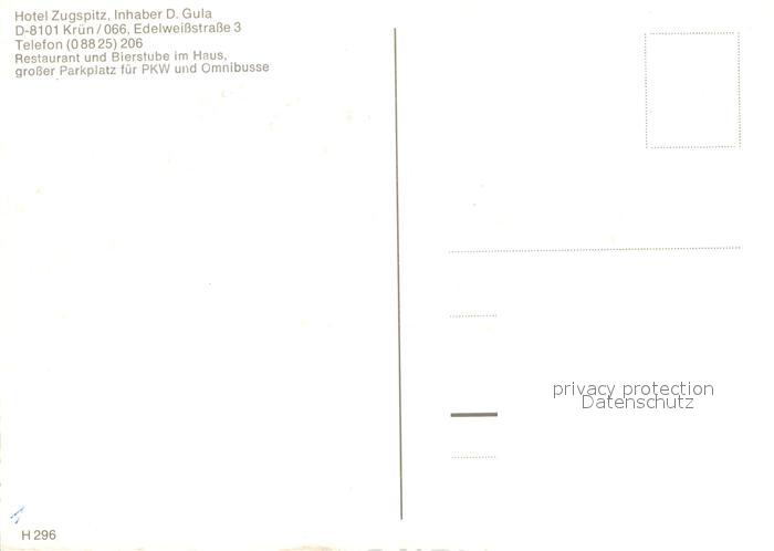 72969715 Kruen Hotel Zugspitz postalisch nicht gelaufen Erhaltung siehe scans [LiesaD40] KatCode: 11110009180122