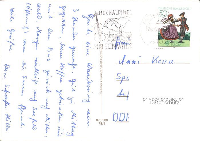 72227035 alte Postkarte Kruen Karwendel Barmsee Zugspitze postalisch gelaufen Erhaltung siehe scans KatCode: 11110009180122