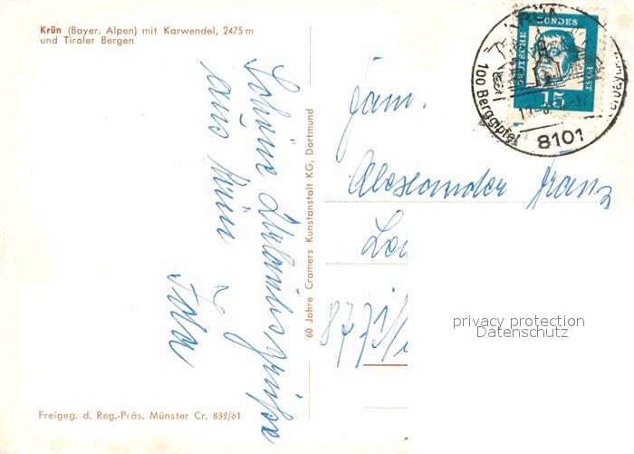 72835212 alte Postkarte Kruen Karwendel Tiroler Bergen postalisch gelaufen Erhaltung siehe scans [NatalD47] KatCode: 11110009180122