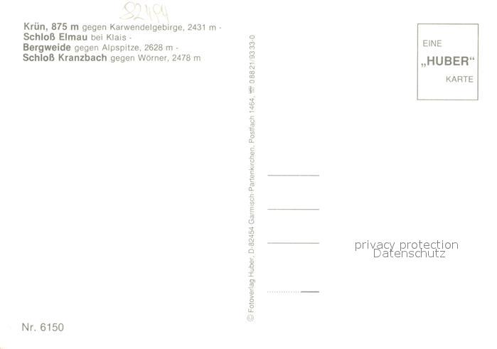 73177828 Kruen Karwendelgebirge Schloss Elmau Herbststimmung Bergweide Schafe Alpspitze Schloss Kranzbach gegen Woerner Huber Karte Nr 6150 postalisch nicht gelaufen Erhaltung siehe scans [FriedD77] KatCode: 11110009180122