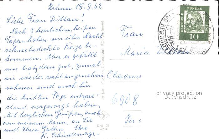 72392849 alte Postkarte Kruen Ortspartie mit Karwendelgebirge postalisch gelaufen Erhaltung siehe scans KatCode: 11110009180122