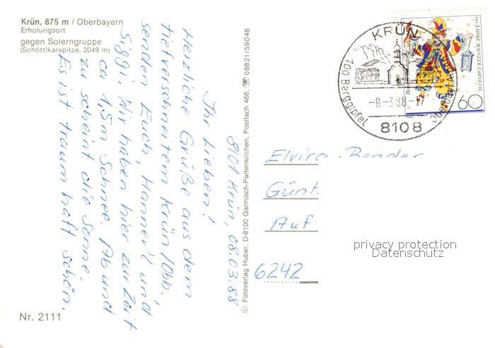 73177827 alte Postkarte Kruen Ortsschild Ortsmotiv mit Kirche gegen Soierngruppe Winterlandschaft postalisch gelaufen Erhaltung siehe scans [FriedD77] KatCode: 11110009180122