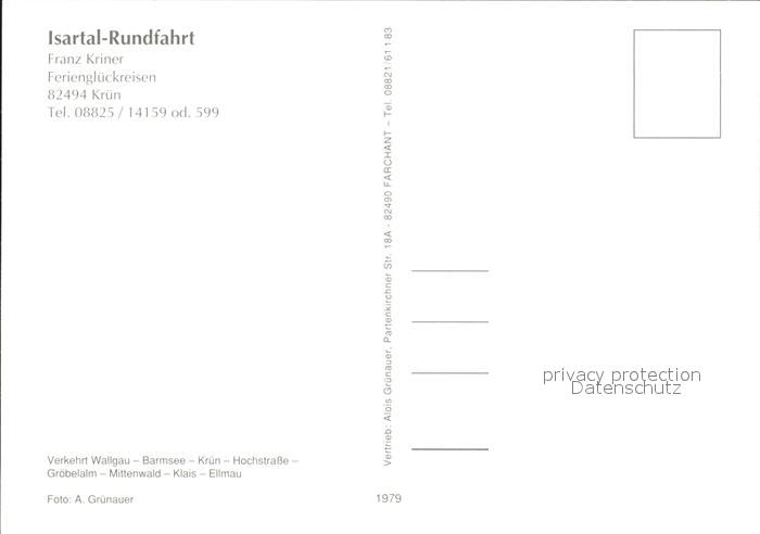 71989211 Kruen Panorama Express Isartal Rundfahrt postalisch nicht gelaufen Erhaltung siehe scans KatCode: 11110009180122