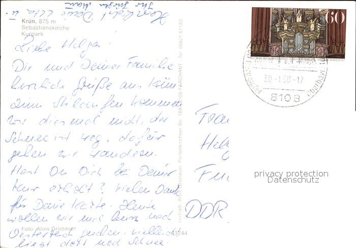 72523263 alte Postkarte Kruen Sebastianskirche Kurpark postalisch gelaufen Erhaltung siehe scans KatCode: 11110009180122