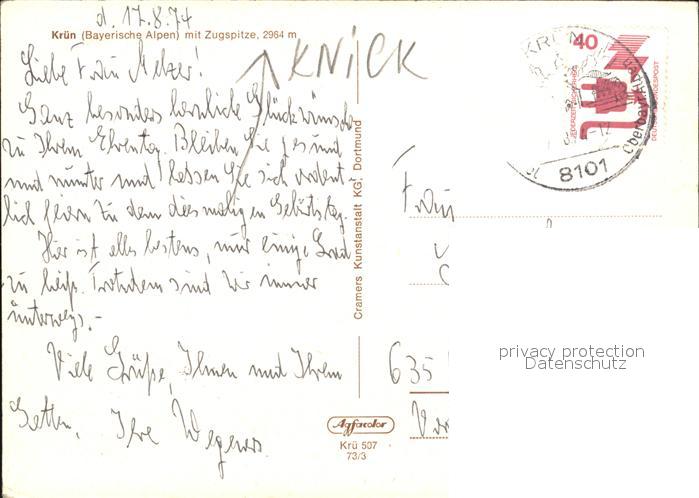 72573335 alte Postkarte Kruen Teilansicht mit Zugspitze postalisch gelaufen Erhaltung siehe scans [AndreD76] KatCode: 11110009180122