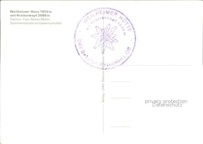 72017091 Kruen Weilheimer Huette Krottenkopf postalisch nicht gelaufen KatCode: 11110009180122