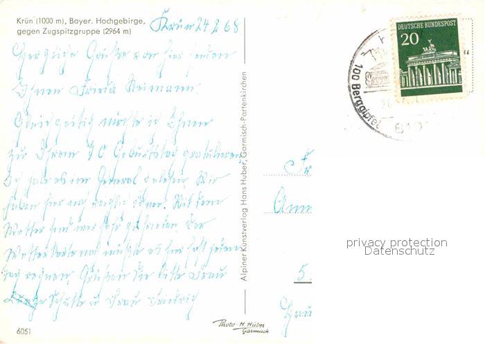 72796342 alte Postkarte Kruen Zugspitze Riffelwand Waxenstein Hochblassen postalisch gelaufen Erhaltung siehe scans [NatalD47] KatCode: 11110009180122
