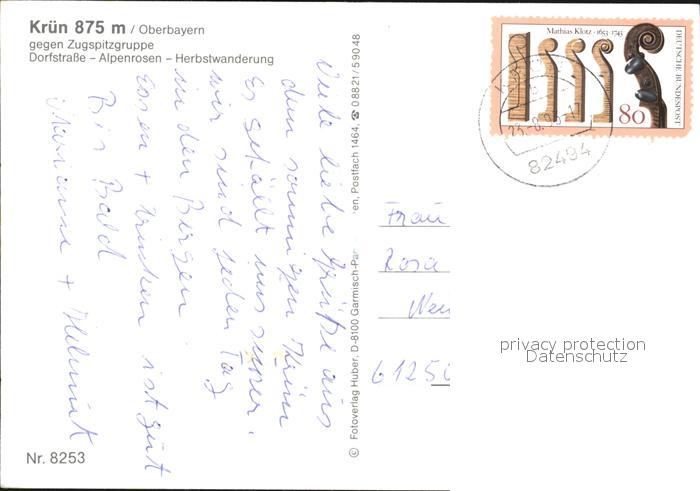 72450102 alte Postkarte Kruen Zugspitzgruppe Dorfstrasse postalisch gelaufen Erhaltung siehe scans KatCode: 11110009180122