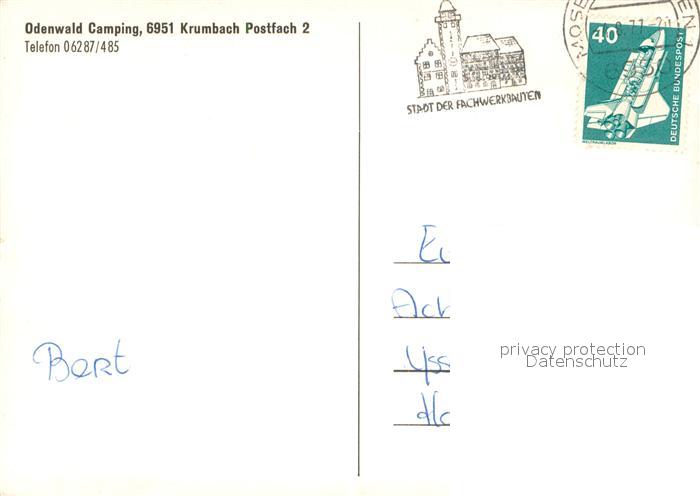 73645004 alte Postkarte Krumbach Odenwald Camping Odenwald Reithalle Hallenbad postalisch gelaufen Erhaltung siehe scans [WerneD78] KatCode: 11110006431007