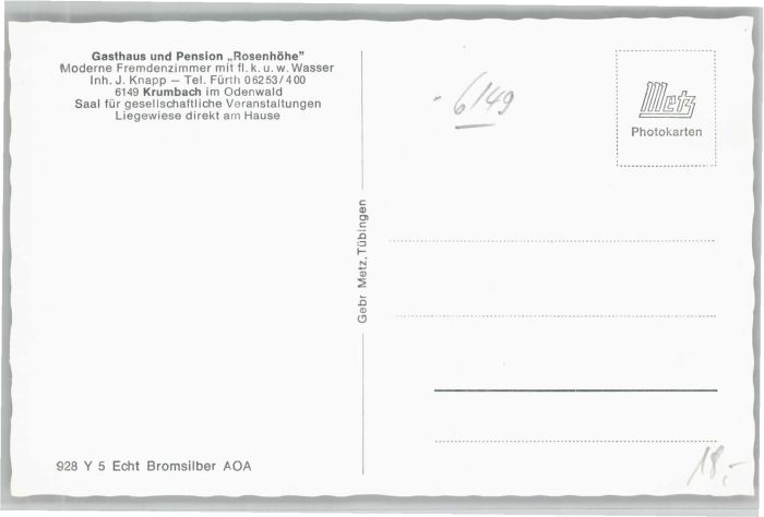 40674102 Krumbach Odenwald Gasthaus Pension Rosenhöhe KatCode 11110006431007